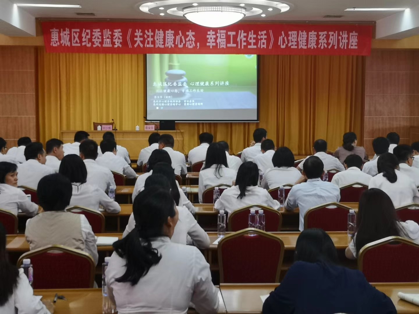 為進(jìn)一步提高紀(jì)檢監(jiān)察系統(tǒng)人員對(duì)心理健康的認(rèn)知水平,正確對(duì)待并釋放壓力,11月16日,惠城區(qū)舉辦紀(jì)檢監(jiān)察系統(tǒng)心理健康專題講座,邀請(qǐng)安穎心理首席咨詢師、國(guó)家二級(jí)心理咨詢師蔡宋華為惠城區(qū)紀(jì)委監(jiān)委全體干部職工進(jìn)行授課。